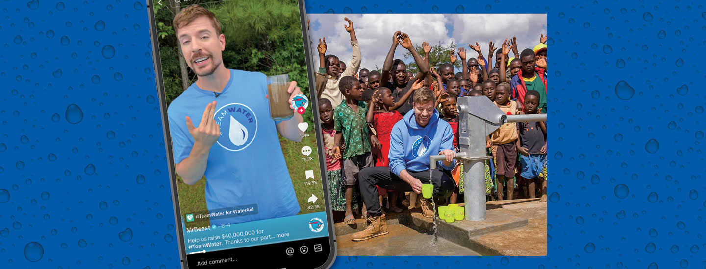 YouTube stars Jimmy Donaldson (also known as MrBeast) and Mark Rober recently stepped up to help. This past August, they launched the #TeamWater campaign, rallying creators and fans to raise money for water projects around the globe. “Everyone in the world deserves clean water,” MrBeast says.